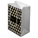 Stylish black, white and yellow love heart Easter Egg patterned Gift Bag set on black background, with popular font typography print "Happy Easter!". A touch of class and festivity as you exchange gifts with family and friends over the Easter Holidays.