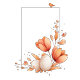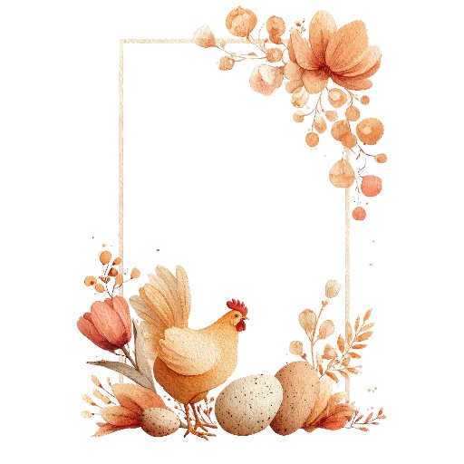 A warm and charming Easter greeting card featuring a delicate floral frame and a sweet chicken illustration.