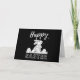 Happy Easter holiday card. Whimsical design with an Easter bunny and Easter eggs.