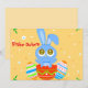 Easter card with Happy Easter! and colorful eggs and a funny Easter bunny. Greeting card for a beautiful Easter time for family and friends.