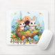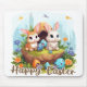 Two lovely rabbits come to celebrate Easter, come out of their burrows and bring beautiful decorated eggs