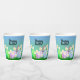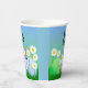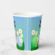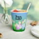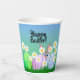 Happy Easter paper cup with a bunny, eggs and white daisies sitting on green grass! The bunny is peeking up behind the green, pink and blue Easter eggs! Let's get a party on!