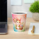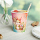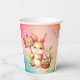 Happy Easter paper cups with a Bunny holding a basket with flowers and coloured eggs