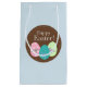 Small Happy Easter Gift Bag with decorated eggs, blue background colour can be changed to your liking.