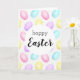 This cute Easter greeting card features the words "Happy Easter" on the front with a colourful pastel Easter egg pattern. The inside reads "Wishing you an egg-cellent Easter" which you can change or remove as desired.
