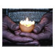 Elderly hands caressing a candle egg, protecting it.