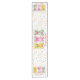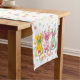 Fun, colourful table runner featuring three bunnies and pastel polka dots, for Easter festivities and events. Images are editable so, for instance, if you didn't want the three bunnies in the middle, you could clear that image.