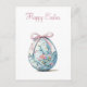 A beautifully decorated Easter egg featuring a floral pattern with pastel blue and pink tones, topped with a charming bow. The vibrant design captures the seasonal festivity with elegance and charm. Perfect for sending warm wishes to family, friends, and loved ones. Spread the joy of Easter with a card that reflects your individual style and warmth. Make this Easter extra special!