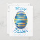Personalized Happy Easter postcards with blue Easter egg and customizable text where you can add your family name on white background
