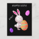 Colourful Easter rabbit & striped eggs postcard with personalized name.