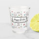 Cheers its a Happy Easter shot glass. It has a watercolor Easter theme pattern and clear background with the phrase "Happy Easter" Get this for you or someone as a gift.