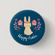 Cute Spring Bunny with Folk Art Style Flowers "Happy Easter" Adjustable text pin.