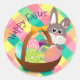 Happy Easter Spring Chequerboard Pattern Classic Round Sticker