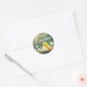 Happy Easter sticker with a little yellow chich in a bird nest with colourful eggs and flowers