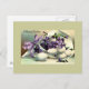 Vintage Easter greeting card, 19th century, with violets and white eggs.