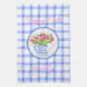 Happy Easter Watercolor Tulips Blue Check Kitchen Towel
