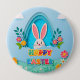 Happy Easter | Whimsical Easter Bunny and Floral 4 Inch Round Button