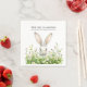 Complete your Easter Brunch & Egg Hunt table setting with these beautifully designed personalized White Bunny Rabbit & Florals paper napkins! Featuring a sweet white bunny nestled among delicate spring wildflowers, this charming watercolor design captures the fresh, uplifting spirit of the season. The soft white petals and cheerful yellow centres add a bright and festive touch to your Easter celebration.