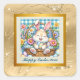 Happy Easter With Cute Bunny, Eggs, and Floral Square Sticker