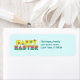 Happy Easter. Cheerful, cute Easter address lables. The word Happy is in a bright cheery yellow, and the word Easter is in an ombre rainbow of colour. Both are overlain with flowers. You can personalize the text in our easy to use template. You can change the background colour if you like, just go to customize. This design is on other fun items in my shop.