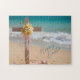 Happy Easter Wooden Cross with Lilies on Beach Jigsaw Puzzle
