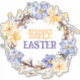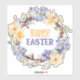 One single sticker of a yellow and purple floral wreath enclosing the words "HAPPY EASTER"