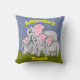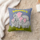 A happy family of elephants strolling through the grass with a polka dot background make up this fun pillow.Flip it over to see a purple pillow with tiled elephants with a polka dot background! Customizable so you can add your own text and change the background colour. This design is available on both round and square pillows. Makes a great gift!