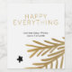 Happy Everything Gold Foliage Personalized bottle labels from Ricaso - perfect holiday table decoration accessories or ideal for gifting - add your own text to this white, mustard gold and black label - from the Happy Everything collection - designed with a beautiful winter foliage detail and small star