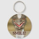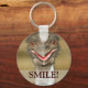 Funny smiling emu bird keychain with text "Smile!" on front.