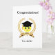 Graduation card with happy face graduate and laurel on white background. Ideal for Graduations. Text can be personalized!