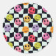 Happy Faces on Warped Black and White Chequerboard Classic Round Sticker