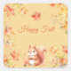 A cute red squirrel holding a heart sits among colourful autumn leaves. The text can be easily changed to whatever greeting you wish.