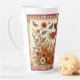 Happy Fall Yall Cute Folk Art Scarecrow with Autumn Foliage, Blutterflies and Red and White Chequered Plaid Latte Mug