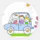 happy family including father daughter and son riding car.