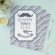Cool retro happy father's day illustration with moustache on striped pattern. Click Customize button to add your personal message.