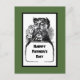 Vintage retro artwork drawing in black and white of an old fashioned looking man. With spectacles and a long moustache decked out in fancy bow and suit. Text reads Happy Father's Day.