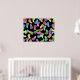 Illustration of lots of colourful footprints with happy smiling faces stomping around against a black background. Image available on various gifts and products.