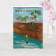 Original digital painting by Ines Miller; whimsical young teddy bear fishing on a wooden port. This brown teddy bear card may be personalized with your own text or special message.