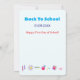 two sides (front and back), with Smiley and School Supplies icons and text template. Personalize them by adding Date, School Name, Family name or wishes text.