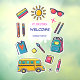 Happy First Day Of School! motivation quotes, back to school, WELCOME / BACK TO SCHOOL / I LOVE SCHOOL GRAPHIC DESIGN / GRADUATION, Kids Party Decoration, Gifts, Colourful, Cartoon. Teacher Day, Gifts Graduation for boys and girls, Announcements Graduation, Classroom, Captions Graduation, Card, Messages, Graduation Ceremony, First Grade, Welcome Poster, Graduation Decorations, Graduation Quotes, Modern Design, cute, funny, cartoon / 1th Grade / 2th / 3th / 4th / 5th / 6th /- two sides (front and back), with Smiley icon and text template. Personalize them by adding Date, School Name, Family name or wishes text.