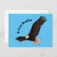 This happy bald eagle is flying high in the sky. Drawn in fun illustration style.