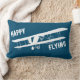 Happy Flying Typography & Airplane, Blue,Simple Lumbar Pillow