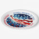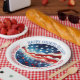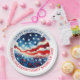 Abstract US flag ai art. Patriotic stars ands stripes red, white and blue Fourth of July party personalized paper plates.