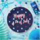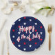 Happy fourth of July modern script text red white and navy blue stars pattern patriotic festive cute fun holiday Party Paper Plates.