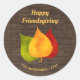 HAPPY FRIENDSGIVING AUTUMN LEAVES ON RUSTIC WOOD CLASSIC ROUND STICKER