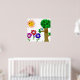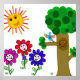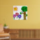 Happy garden poster for kids with smiling flowers, tree and sun.