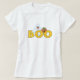 Cute Halloween T-shirts and other Halloween apparel featuring a Halloween ghost and smiling jack o lantern behind yellow text that reads "BOO"! Cute for every member of the family from baby Halloween to adult Halloween, this Halloween T-shirt can be customized on the spot with text or a name!