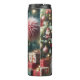 This festive close-up illustration features an adorable gnome with a long, flowing white beard and a tall, striped hat topped with a fluffy pompom. The gnome's cheerful expression and cozy sweater are set against a blurred background of a decorated Christmas tree, glowing lights, and falling snow, creating a magical holiday mood.