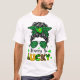 Happy Go Lucky Messy Bun Shamrock St Patricks Day T-Shirt