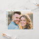 This wedding invitation features a warm, intimate photograph of two smiling individuals, capturing the essence of happiness and closeness. The design showcases a soft, natural color palette with a focus on realistic representation, highlighting fine details like hair texture and gentle lighting reminiscent of golden hour. The composition centers on their heads and shoulders against a blurred background, creating an inviting and personal atmosphere. Perfect for couples seeking a genuine and heartfelt touch for their special day, this invitation conveys love and joy through its authentic imagery.